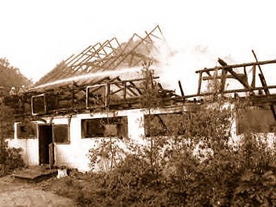 schlugen aus dem Fenster, aus dem Dach.