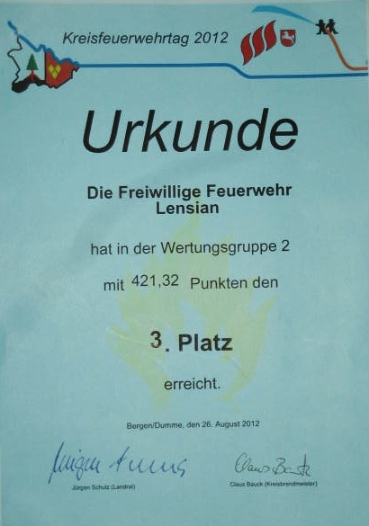 erkämpfte sich die Wettkampfgruppe der Ortsfeuerwehr Lensian